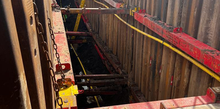 As a groundworks contractor for Cadent Gas, we constructed a new 25m cofferdam to lower the gas main height, enabling the installation of a staircase for access to the lower-level car park at Stockport Station. Our precise excavation expertise ensures a seamless project for enhanced accessibility and safety.